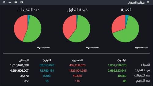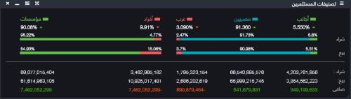 تحتوى على قيم إجماليات تداولات السوق بالإضافة إلى قيم تداولات المستثمرين بفئاتها (أفراد ومؤسسات) لحظياً لجلسة البورصة وتنقسم إلى قائمتان وهما :