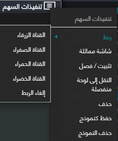 فى حالة ربط شاشة الأسعار مع نافذة أخبار السهم بالإضافة إلى نافذة التنفيذات بالسعر يتم الربط بنفس اللون فى القوائم كما يلى