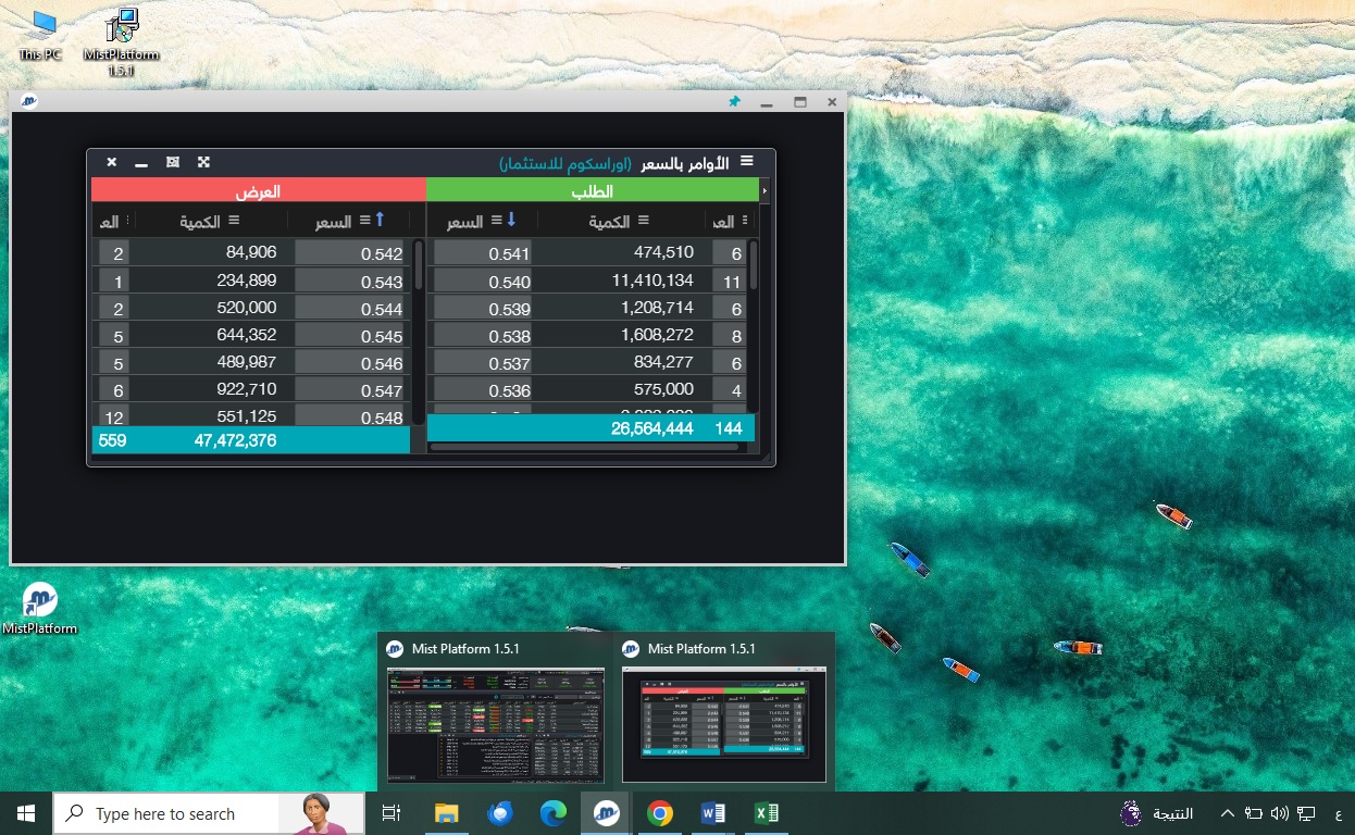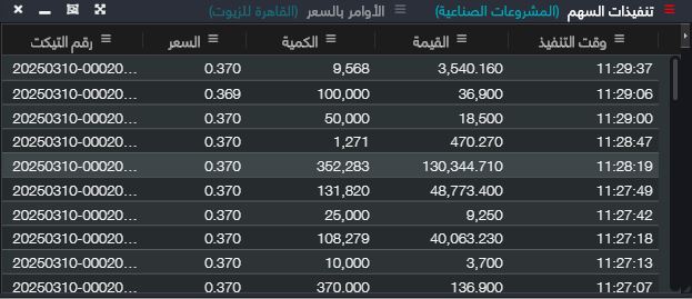 يلاحظ فى الصورة تم دمج نافذة الأوامر بالسعر مع نافذة تنفيذات السهم