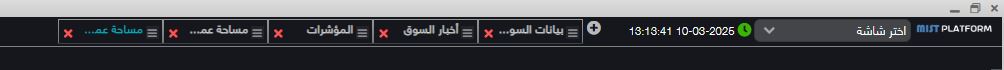 - يستطيع المستخدم نقل وترتيب مساحات العمل عن طريق الإمساك بمساحة العمل بشمال الماوس وتحريكها يميناً ويساراً ثم إفلاتها