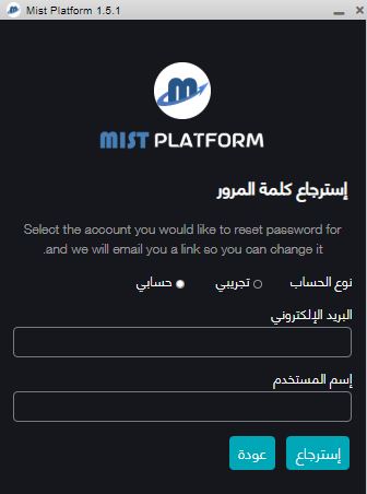 قم بإدخال البريد الإليكترونى الخاص بك والمسجل به حسابك لدى شركة ميست
