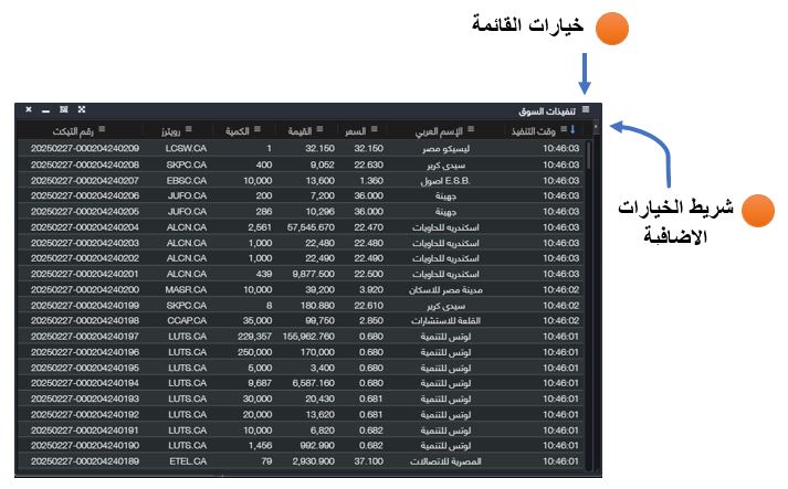 تقوم بعرض جميع الصفقات التى تتم على الاسهم خلال جلسة البورصة