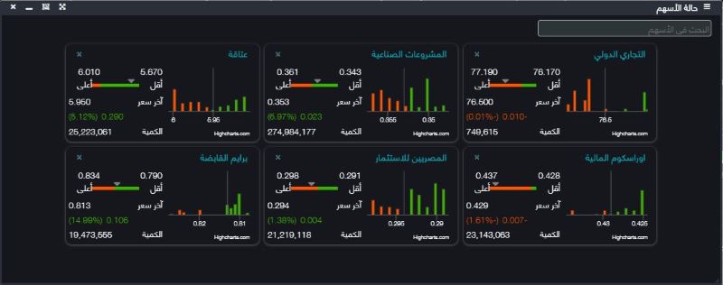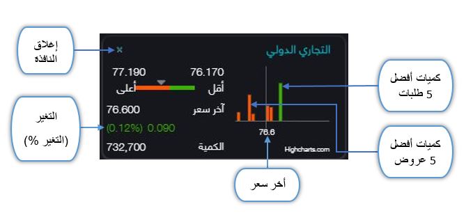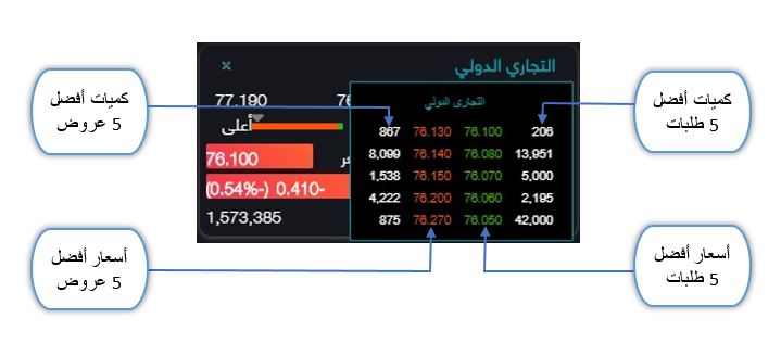 يستطيع المستخدم من خلالها متابعة حركة الأسهم فهى عبارة عن افضل 5 عروض وطلبات فى شكل رسم بيانى