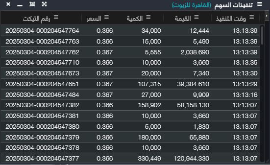 وهى قائمة تحتوى على جميع الصفقات التى تمت على سهم معين فى جلسة البورصة لحظياً بعرض تفصيلى