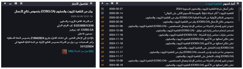 - يمكنك تفعيل خاصية الربط الموجودة فى خيارات القائمة لربط نافذة أخبار السهم مع نافذة محتوى الخبر