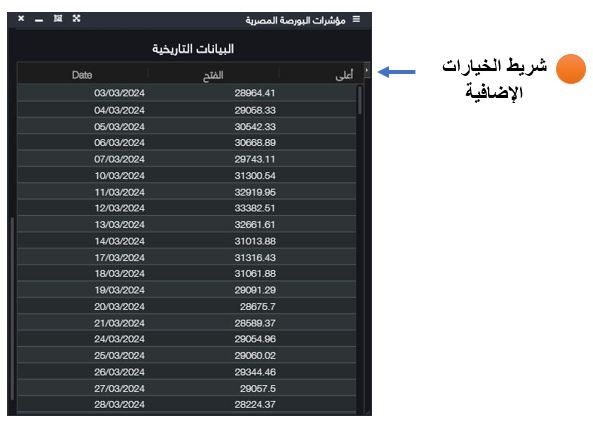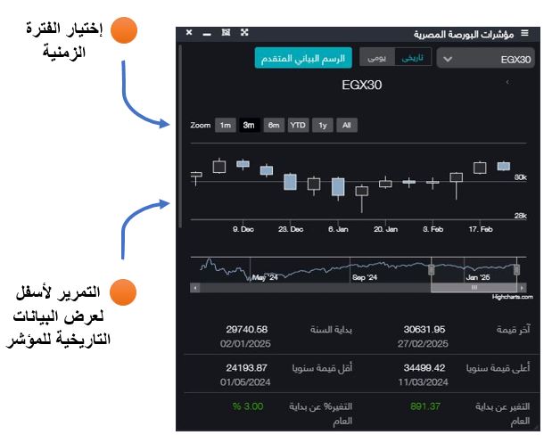 - إضغط للتحويل من البيانات اللحظية إلى البيانات التاريخية للمؤشر الذى تم اختياره