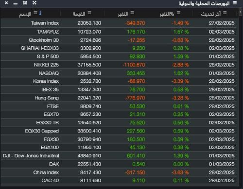 تحتوى على بيانات المؤشرات المصرية اللحظية وبيانات المؤشرات الدولية متأخرة 15 دقيقة